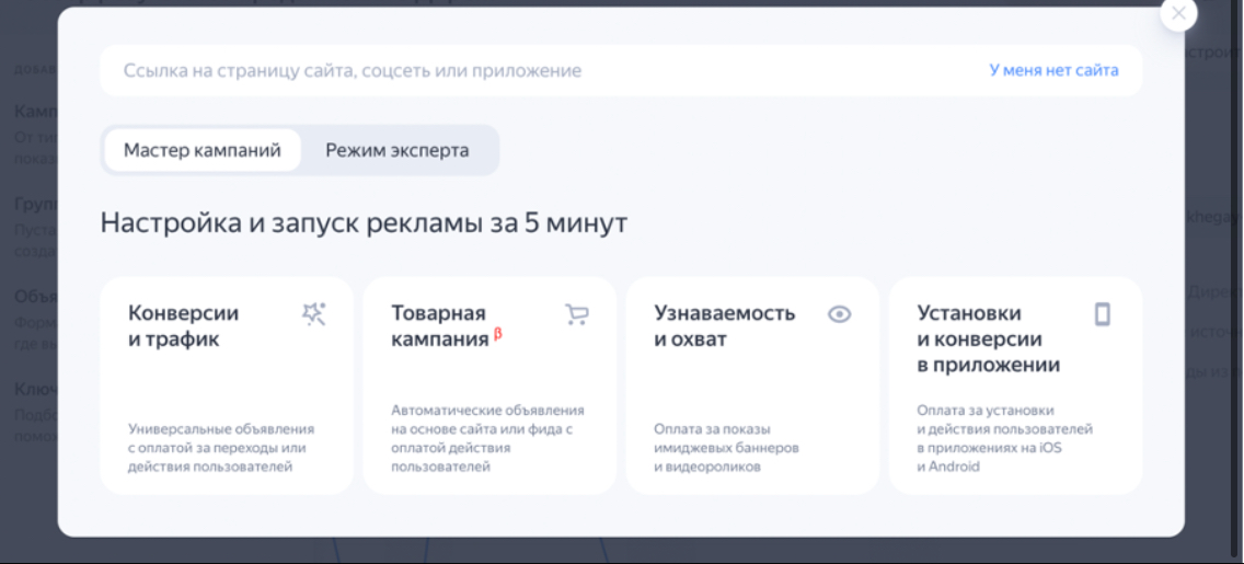 В Мастере кампаний Директа появилась новая функция для предпринимателей без сайта — автоматический сайт для рекламы. Это удобно для тех предпринимателей, кто ведет свой бизнес через соцсети и мессенджеры, но теряют конверсии, если пользователь не зарегистрирован в какой-либо из них.