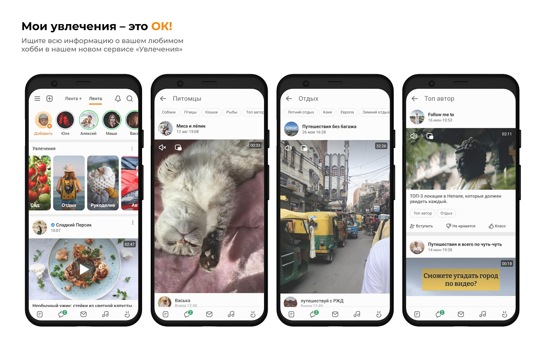ОК объявили о масштабном обновлении сервиса, в котором также появился целый новый раздел — «Увлечения». В нем формируется контент об увлечениях и хобби, а также действует система тегов, чтобы лучше ориентироваться в категориях. Новый раздел уже доступен на главной странице во всех версиях сервиса.