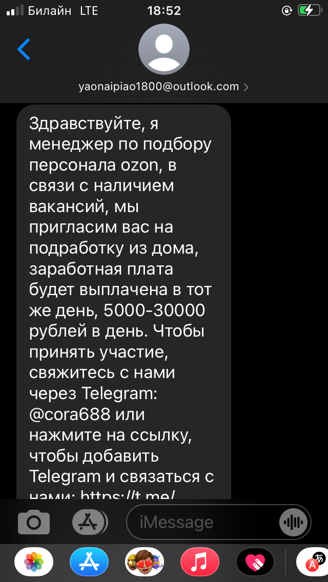 На протяжении почти целого месяца пользователям стали приходить смс и письма якобы от представителей OZON и Wildberries. Отправитель представляется менеджером маркетплейса и предлагает стать частью команды. В письме предлагают вакансию на удаленной основе по продвижению продавцов. За неполный рабочий день предлагается от 3 до 30 тысяч рублей — в зависимости от дальнейших условий схемы.