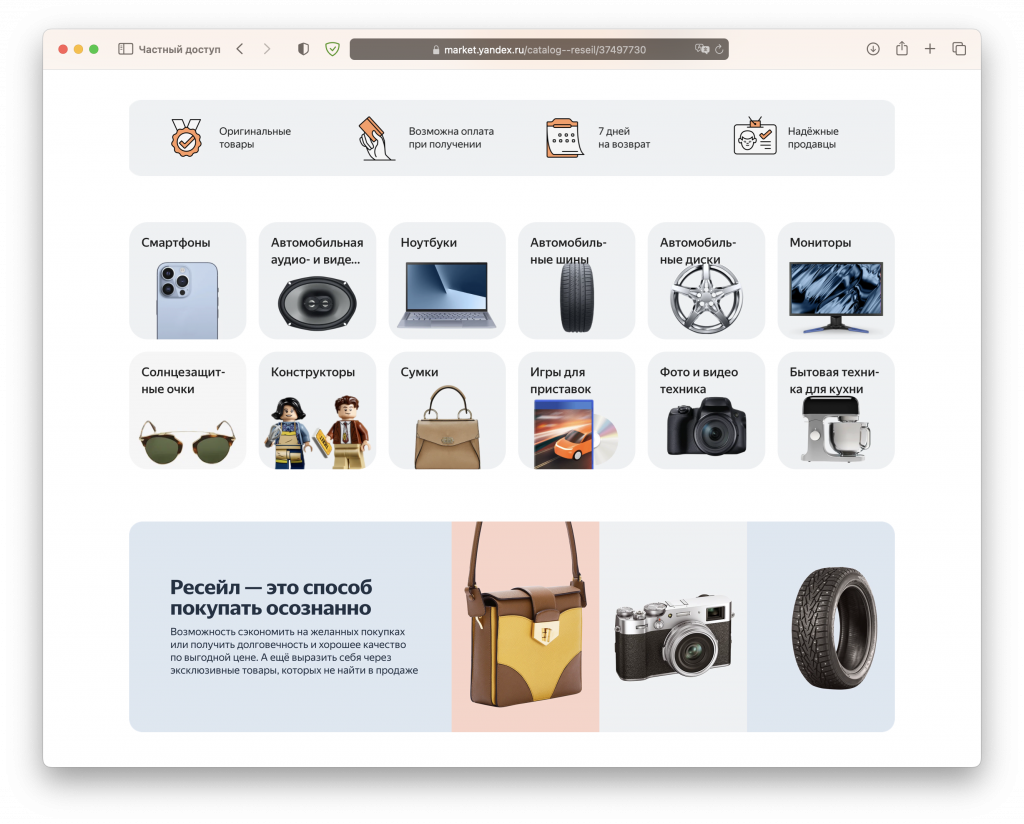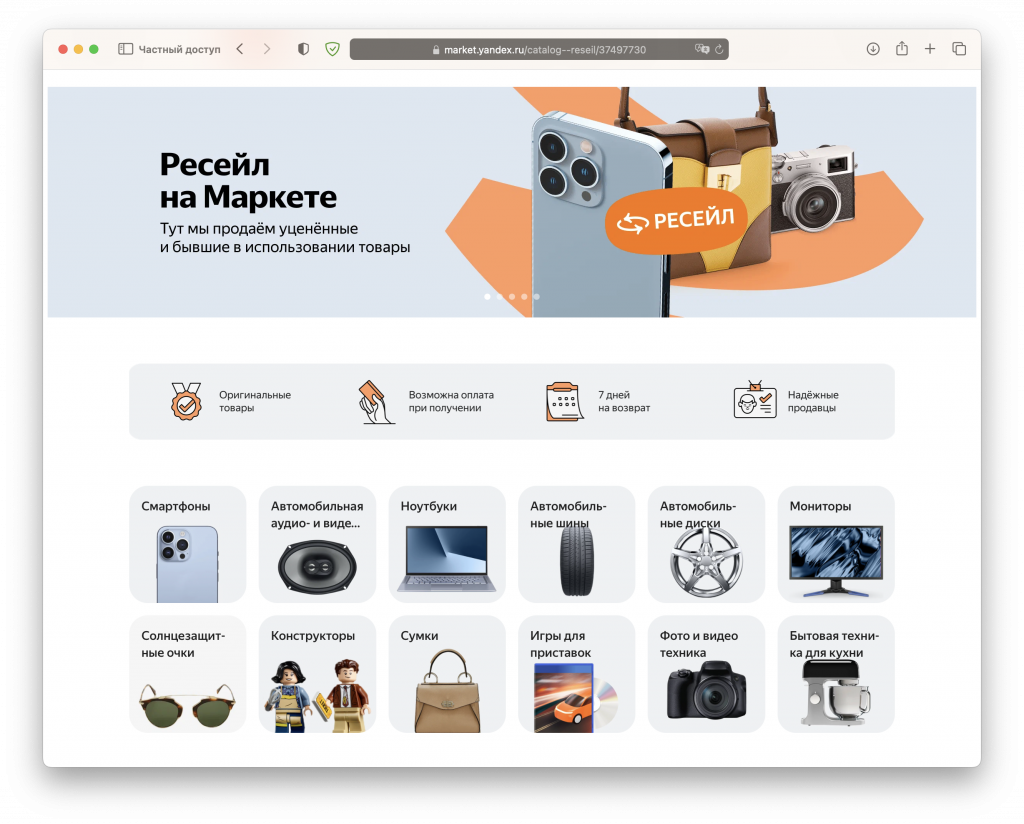 Начиная с 17 октября проверенные продавцы смогут добавлять товары в новый раздел «Ресейл». Раньше на маркетплейсе можно было приобрести только подержанные смартфоны и люксовые сумки. Теперь в новый раздел можно добавлять любые товары, бывшие в употреблении.