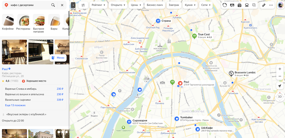 Нейросеть также собирает данные с сайта компании, прайс-листов, меню и ключевых слов. Например, вы можете вбить в поиске экзотическое блюдо и получить результат на Картах, где вы точно сможете это блюдо попробовать.
