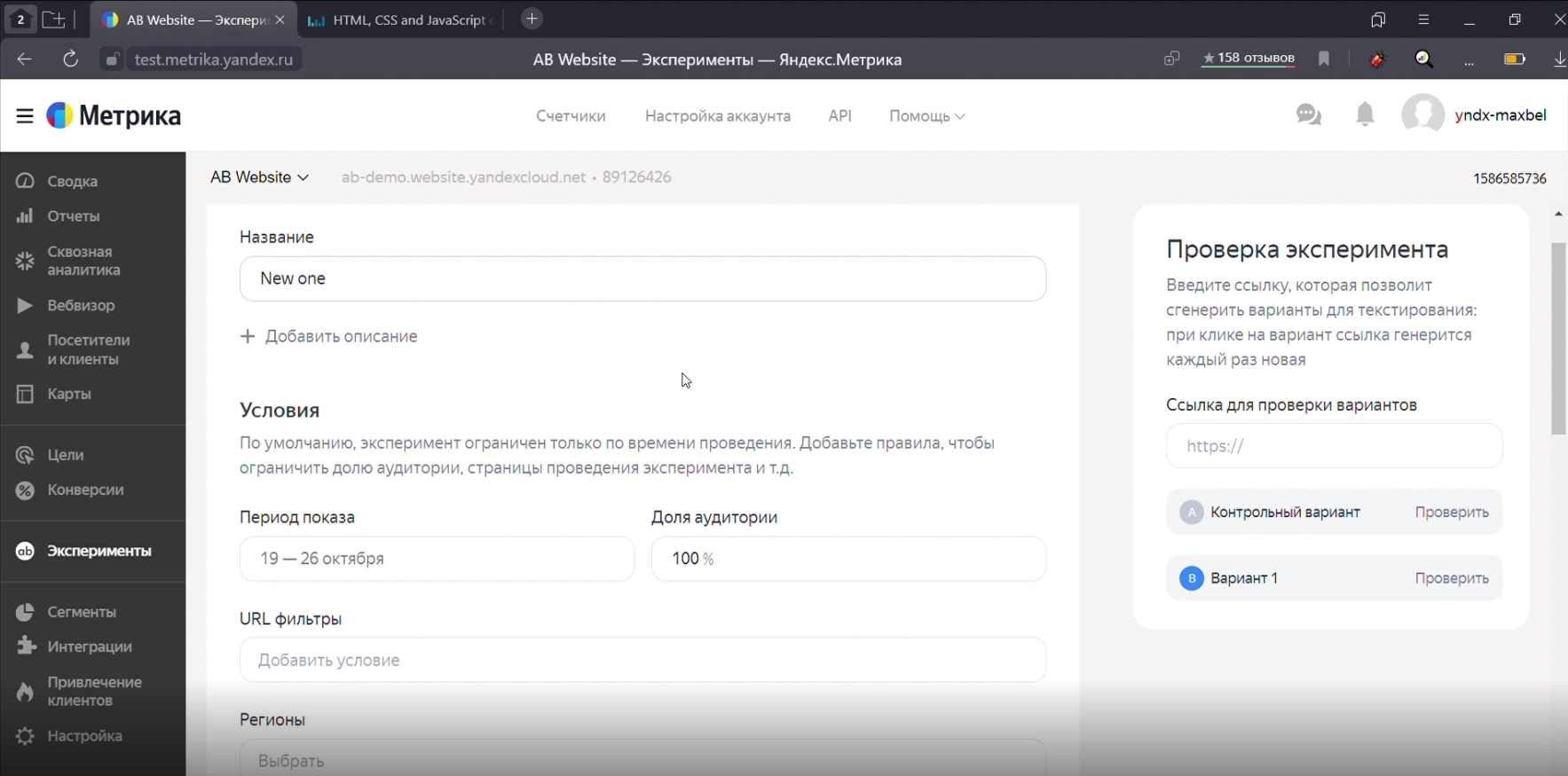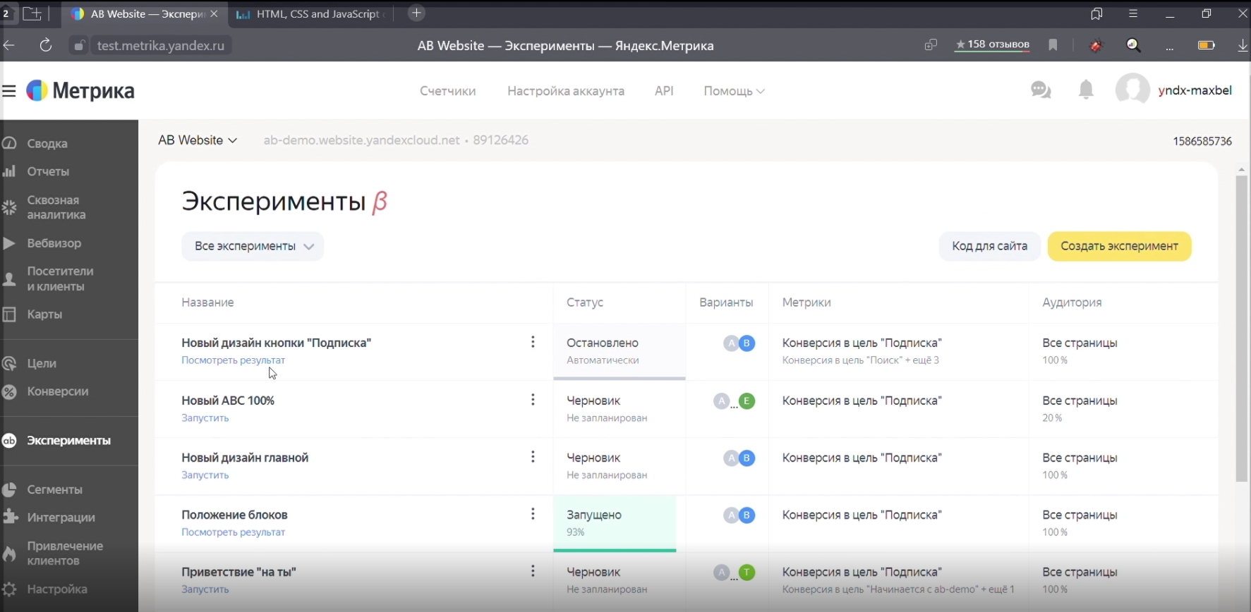 На время действия эксперимента пользователям демонстрируются обе версии сайта. Каждому сайту Вариокуб присваивает уникальный идентификатор, по которому система определяет, какой сайт видит пользователь. Все действия регистрируются через счетчик Метрики. По завершению эксперимента все данные можно увидеть в специальном разделе Яндекс.Метрики.