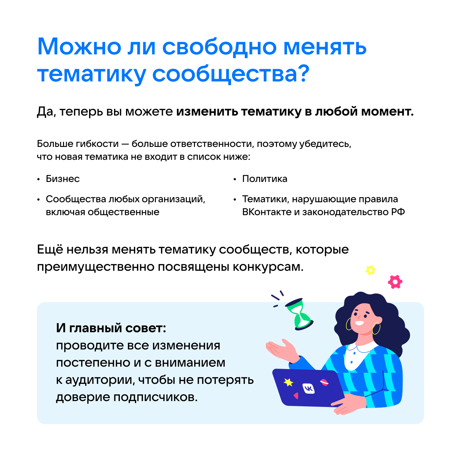 Также в сообществах вскоре появится информационный блок, где будет можно узнать дату создания паблика и историю изменения его названий. Изменились условия проведений акций и коллабораций с рекламодателями. Ознакомиться с новыми правилами можно по ссылке. Все изменения вступят в силу 23 ноября.