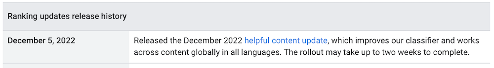 Как сообщают в аккаунте Google Search Central, обновление Helpful content update стартовало 5 декабря. Соответствующее объявление также появилось на странице истории обновлений Google.