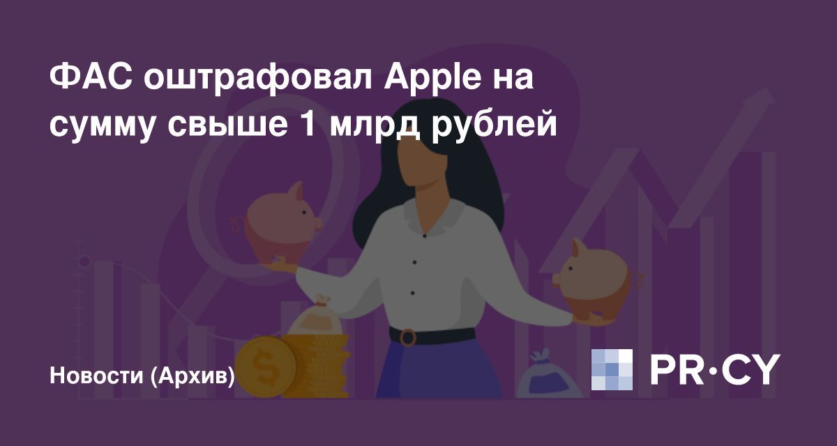 Федеральная антимонопольная служба России огласила свой окончательный вердикт по антимонопольному делу против Apple. Компанию оштрафовали на сумму свыше $17 млн, а именно 1 177 988 700 рублей. На оплату штрафа ей предоставили два месяца.