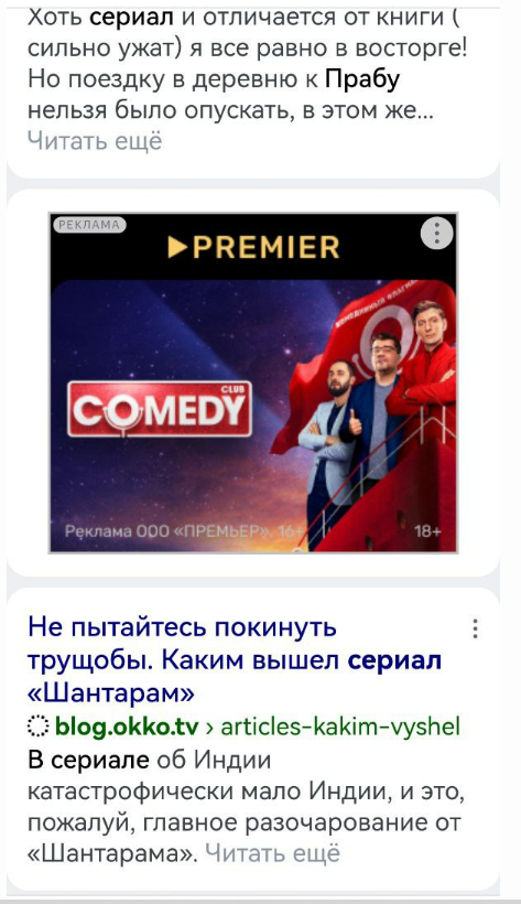 Новый формат обнаружили коллеги из AdIndex. В мобильной версии поиска Яндекса появился рекламный баннер между соседними результатами выдачи. В компании уже успели подтвердить, что тестируют новый формат, однако не уточнили сроков внедрения.