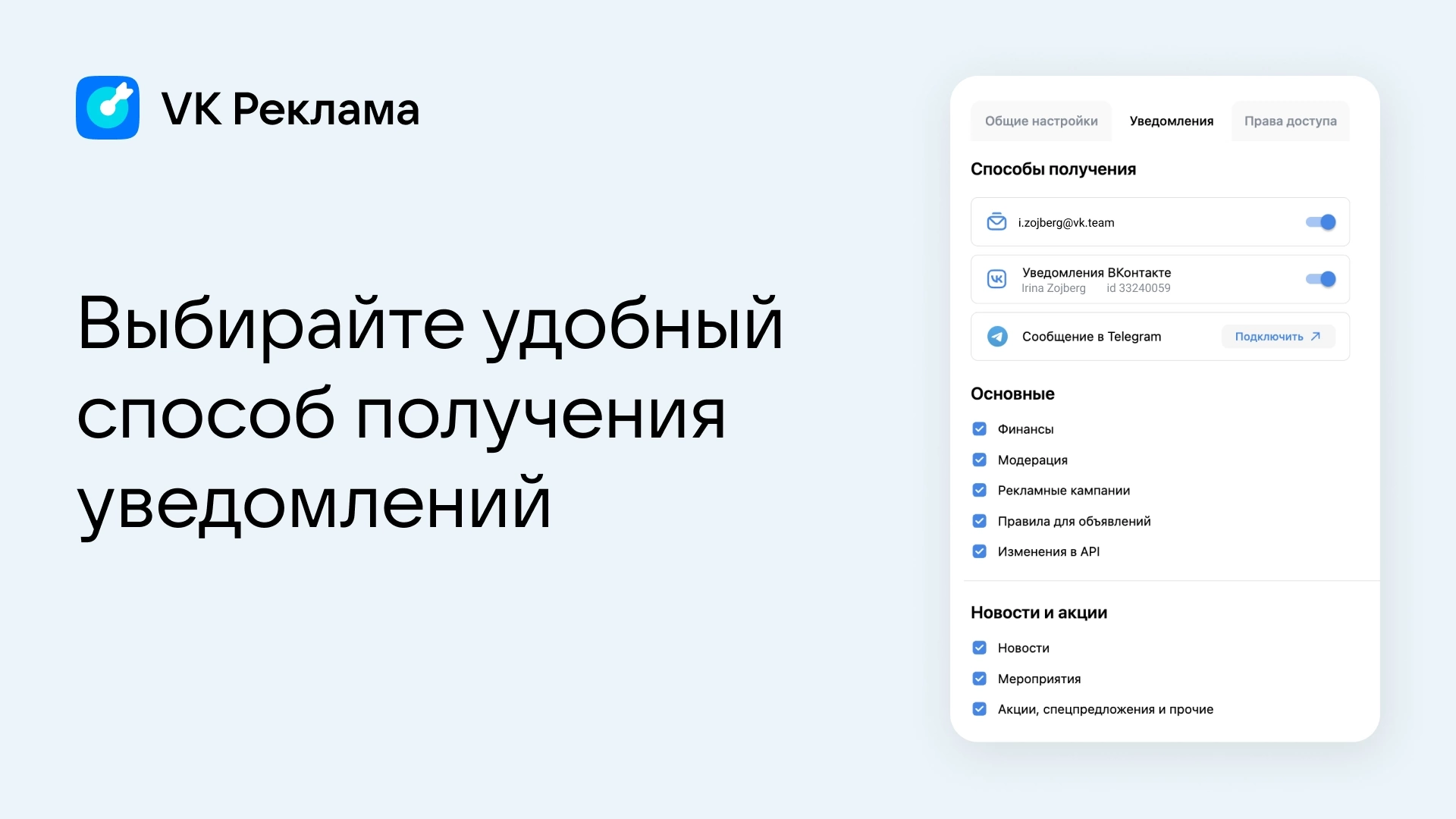 Новая функциональность доступна в личном кабинете: «Настройки» → «Уведомления». При подключении к мессенджеру, вы перейдете к Telegram-боту.